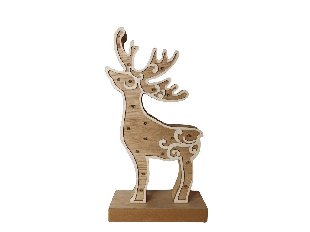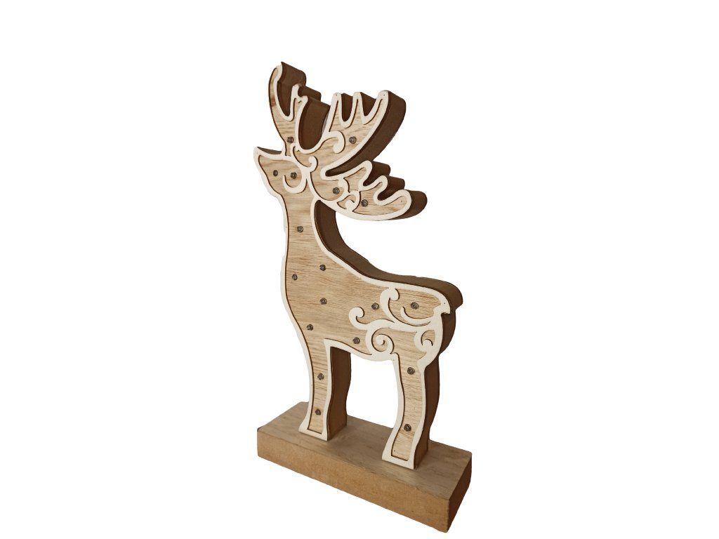 Drevený svietiaci sob – vianočná dekorácia s LED svetlami