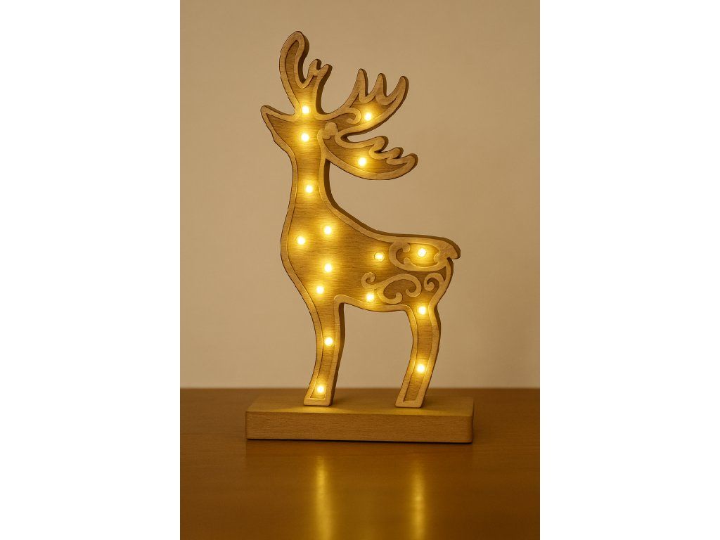 Vneste do svojho domova čarovnú vianočnú atmosféru s elegantným dreveným sobom, ktorý svieti teplým bielym svetlom. Dekorácia je vyrobená z prírodného dreva a vďaka decentnému dizajnu sa hodí do každého interiéru – na stôl, poličku alebo okenný parapet.