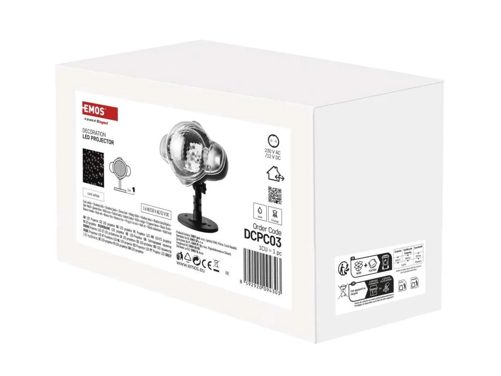 Vneste do svojho domova čaro Vianoc za pár sekúnd. Dekoratívny laserový projektor EMOS vykúzli na fasáde domu, záhrade aj v interiéri pohybujúce sa snehové vločky v studenej bielej farbe. Efektné rotujúce svetlo dodá každej ploche zimnú atmosféru, ktorá zaujme na prvý pohľad.