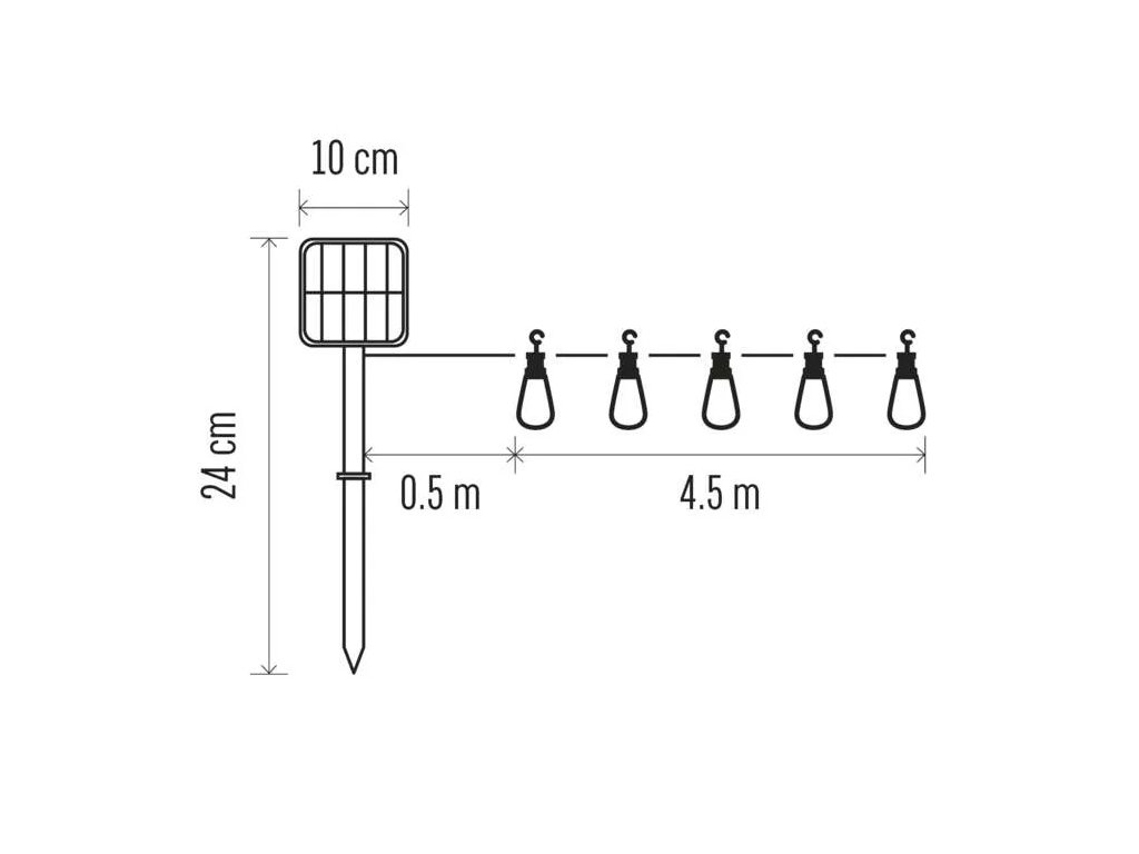 LED reťaz so solárnym panelom – 10x párty žiarovky, 5 m, vonkajšie aj vnútorné, retro