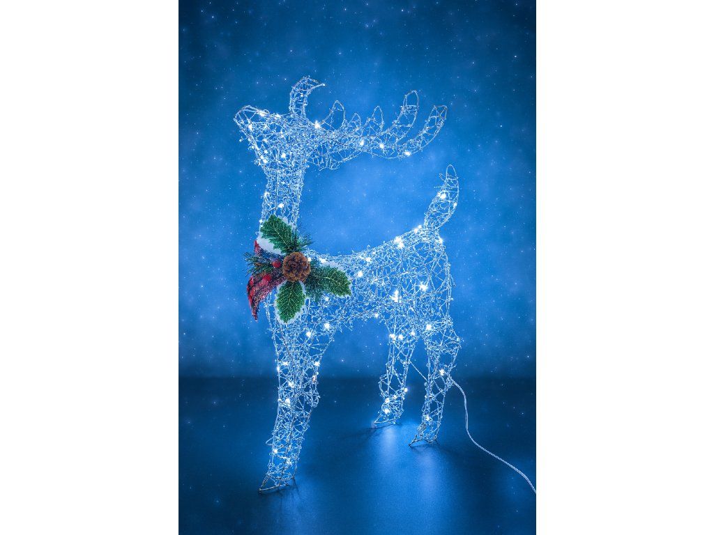 Táto elegantná LED svietiaca ozdoba v podobe soba je ideálnym vianočným doplnkom pre vaše interiéry aj exteriéry. Vyrobená z kvalitného drôteného materiálu so strieborným povrchom, prináša do vášho domova atmosféru zimnej rozprávky. Sob je osvietený studenou bielou farbou, čo vytvára moderný a štýlový vzhľad. Ozdobu dopĺňa jemná mašľa okolo krku, ktorá je zdobená šúpolím a lístím, čo dodáva celkovému dizajnu prírodný a elegantný nádych. S výškou 60 cm a šírkou 30 cm sa skvele hodí na stôl, parapet alebo ako súčasť vonkajšej výzdoby. Napájanie je realizované priamo do zásuvky, čo zaisťuje pohodlnú a bezstarostnú inštaláciu.