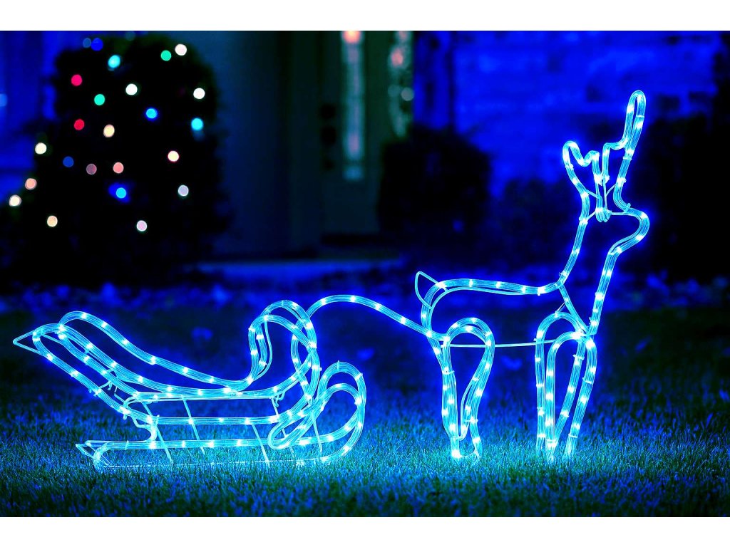 LED Vianočná dekorácia – Sob so saňami, modrá