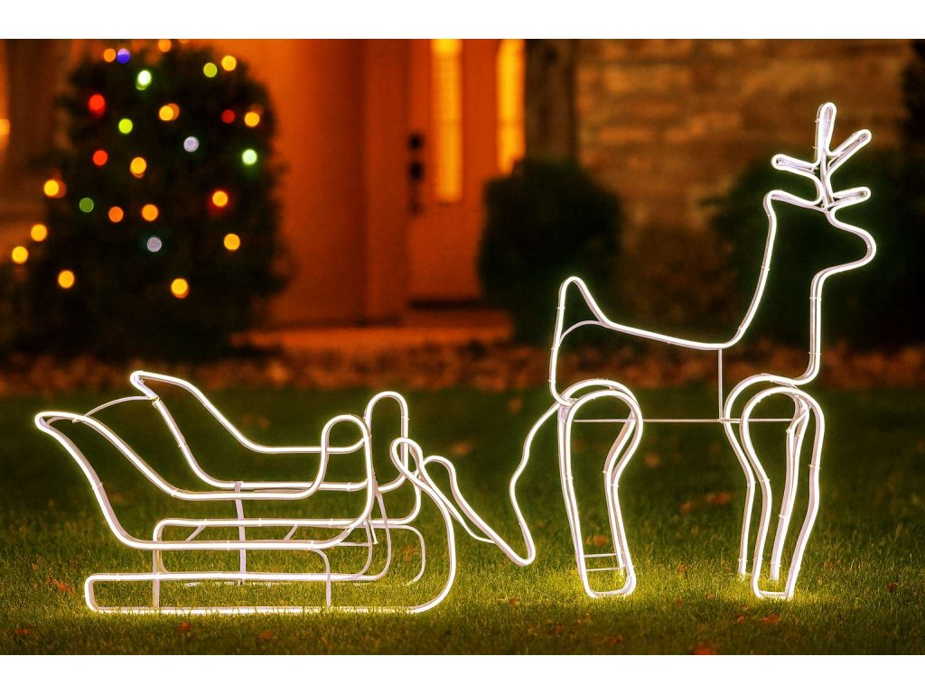 Vneste do svojej vianočnej výzdoby eleganciu a moderný štýl s dekoráciou soba so saňami, osvetlenou LED neon flex hadicou v teplej bielej farbe. Vďaka tejto technológii pôsobí svetlo rovnomerne a vytvára krásne, plynulé línie, ktoré vyniknú na záhrade, terase aj v interiéri.