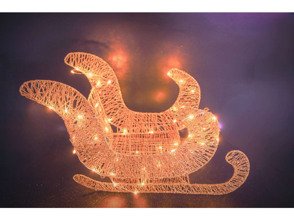 Elegantné LED vianočné sane s trblietkami vynikajú svojím ružovozlatým dizajnom a teplým bielym svetlom, ktoré dodá vášmu domovu aj záhrade čarovnú atmosféru. Dekorácia je vyrobená z odolného materiálu s krytím IP44, takže je vhodná na použitie v interiéri aj exteriéri.