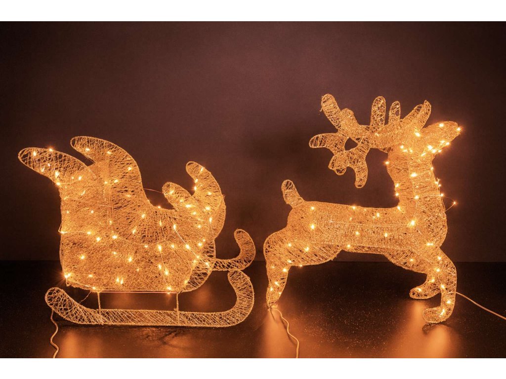 Doprajte svojim Vianociam nádych luxusu s touto nádhernou LED svetelnou dekoráciou soba so saňami. Elegantná kovová konštrukcia je zdobená jemnými trblietkami, ktoré pod svetlom LED diód vytvárajú čarovný efekt. Vďaka prepracovanému dizajnu sa táto dekorácia stane neprehliadnuteľným prvkom vášho interiéru aj exteriéru.