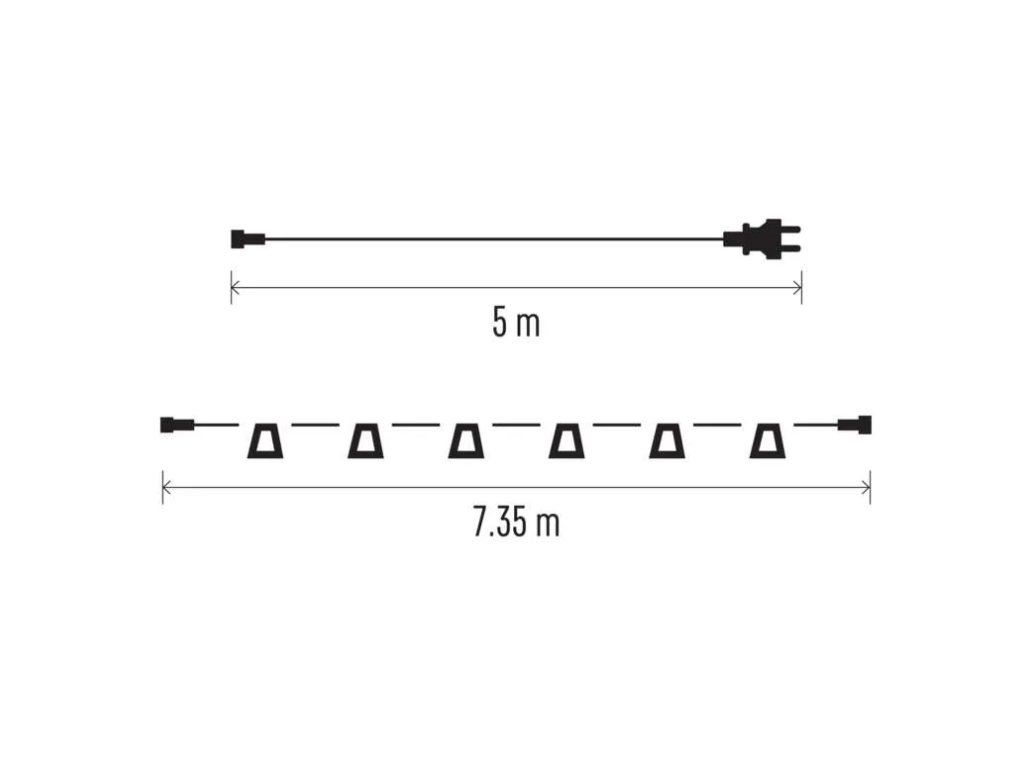Predlžovacia svetelná reťaz na 10 žiaroviek E27 ŠTART SADA, 7,35 m, vonkajšia aj vnútorná