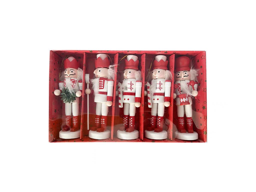 Sada drevených ozdôb na stromček - luskáčiky, 12,5cm, 5ks