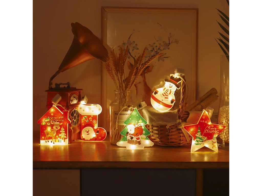 Sada LED svetelných vianočných ozdôb, rôzne vianočné motívy, 6ks