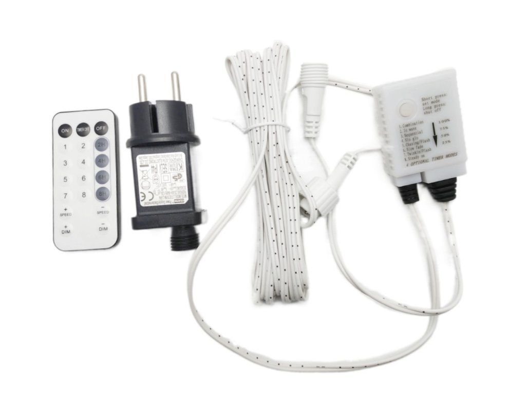 Transformátor, napájací zdroj pre svetelné vianočné závesy, 9W, s diaľkovým ovládaním, pamäťou a časovačom
