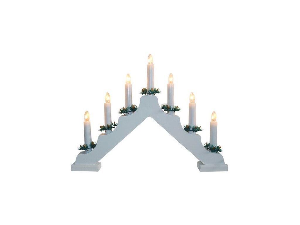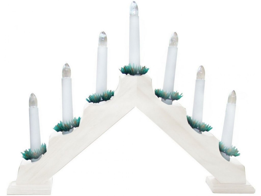 Vianočný drevený svietnik v tvare pyramídy, biela, 7 sviečok, teplá biela