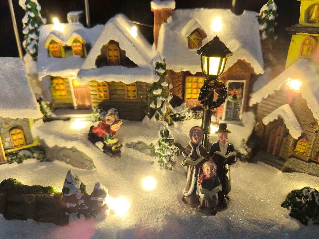 Dedinka je vyrobená z kvalitného materiálu s dôrazom na detaily – od striech pokrytých „snehom“ až po drobné postavičky spevákov. Ideálne ako vianočné dekorácie aj ako originálny darček pre milovníkov Vianoc a zimných scenérií.