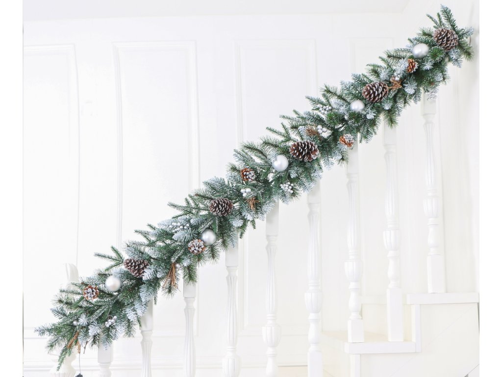 Ozdobte svoj domov touto vianočnou dekoračnou girlandou! S bohatými smrekovými a borovicovými ihličiami prináša čaro Vianoc do každého priestoru. Ideálne na zavesenie na zábradlie, dvere či okná, girlanda okamžite vytvára sviatočnú atmosféru. Je vyrobená z umelého smrekového a borovicového ihličia, doplnená prírodnými šiškami a farebnými ozdobnými guľami.S dĺžkou 180 cm a šírkou 30 cm sa ľahko inštaluje a prispôsobí rôznym miestam, čo z nej robí perfektnú vianočnú dekoráciu pre váš domov!