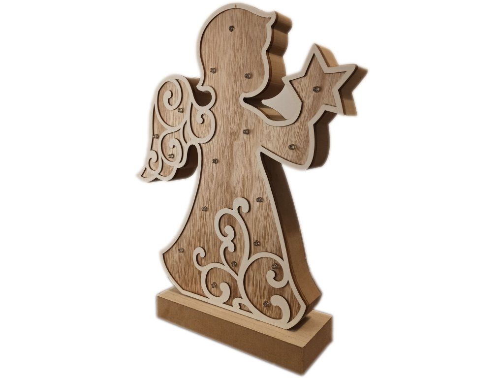 - LED dekoračná ozdoba, drevený anjel