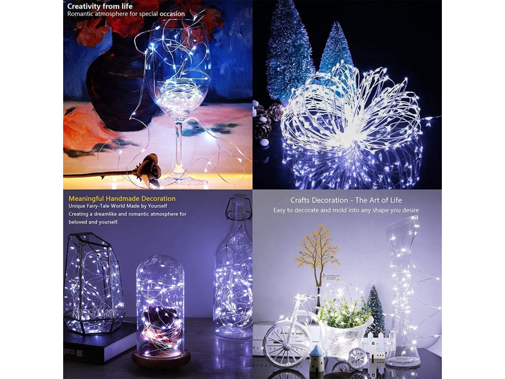 Tato vianočná mikro reťaz v studenej bielej farbe meria 10 metrov. Ponúka funkciu automatického vypnutia po 6 hodinách a následného zapnutia po 18 hodinách, čo zabezpečuje pohodlnú prevádzku. Ohýbateľný drôt umožňuje kreatívne dekorácie a tvarovanie. Perfektný na vytvorenie podmanivej vianočnej atmosféry s elegantným leskom.