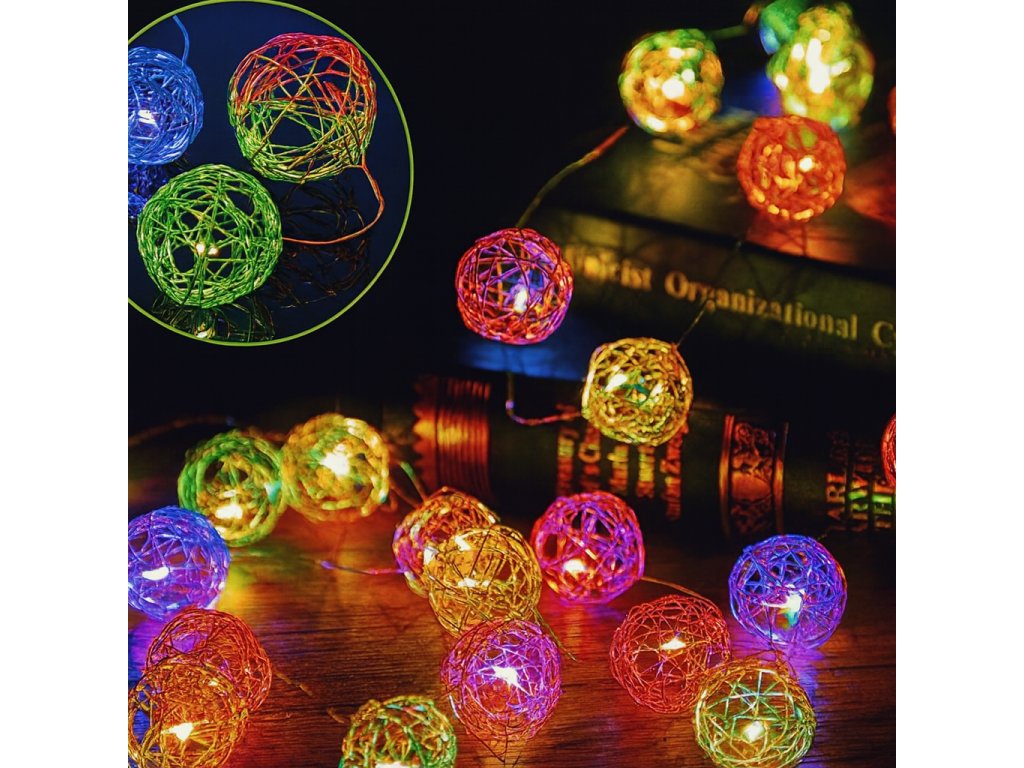 Táto vianočná mikro reťaz je ideálna pre vytvorenie útulnej atmosféry počas sviatkov. Pozostáva z 50 drôtených rôznofarebných drôtených gulí, ktoré sú umiestnené na 5 metroch svetelnej časti. Každá guľa má priemer 3 cm a medzi nimi je rozostup 7 cm. Maximálny príkon tejto reťaze je 2W. Tento dekoratívny prvok dodá vianočnú náladu do vášho domova a je možné ho využiť na rôzne spôsoby pri vianočnej výzdobe.