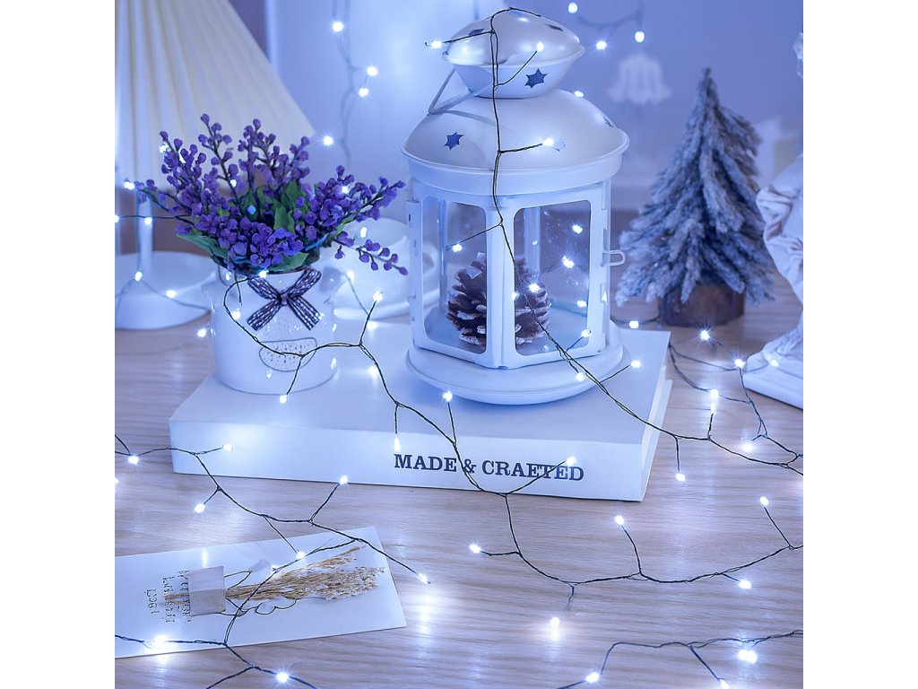 Vianočná LED mikro reťaz s dĺžkou 50 metrov ponúka 1500 extra hustých LED diód, ktoré vytvárajú teplé biele a príjemne útulné osvetlenie. Vďaka tenkému a ohybnému mikro drôtu ho ľahko tvarujete okolo stromčeka, okien, zábradlia či dekorácií. Reťaz disponuje 8 svetelnými programami a vďaka funkcii pamäte si po vypnutí zapamätá naposledy zvolený režim. Pohodlné používanie zaisťuje diaľkové ovládanie, zatiaľ čo 5-metrový prívodný kábel umožňuje flexibilné umiestnenie. Osvetlenie je napájané zo zásuvky a vďaka krytiu IP44 je vhodné pre vnútorné aj vonkajšie použitie.