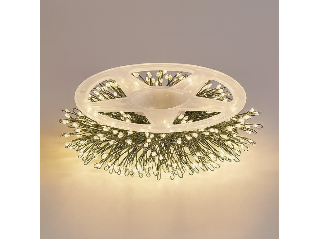 Vianočné LED mikro reťaz, teplá biela, 100m, 3000 LED, 8 programov, zelený drôt, IP65
