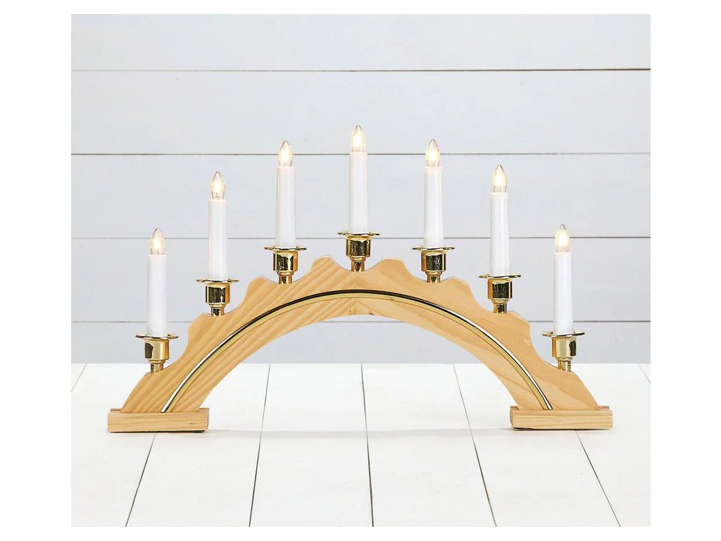 Vianočný drevený svietnik v tvare oblúka, prírodný, 7 sviečok, teplá biela