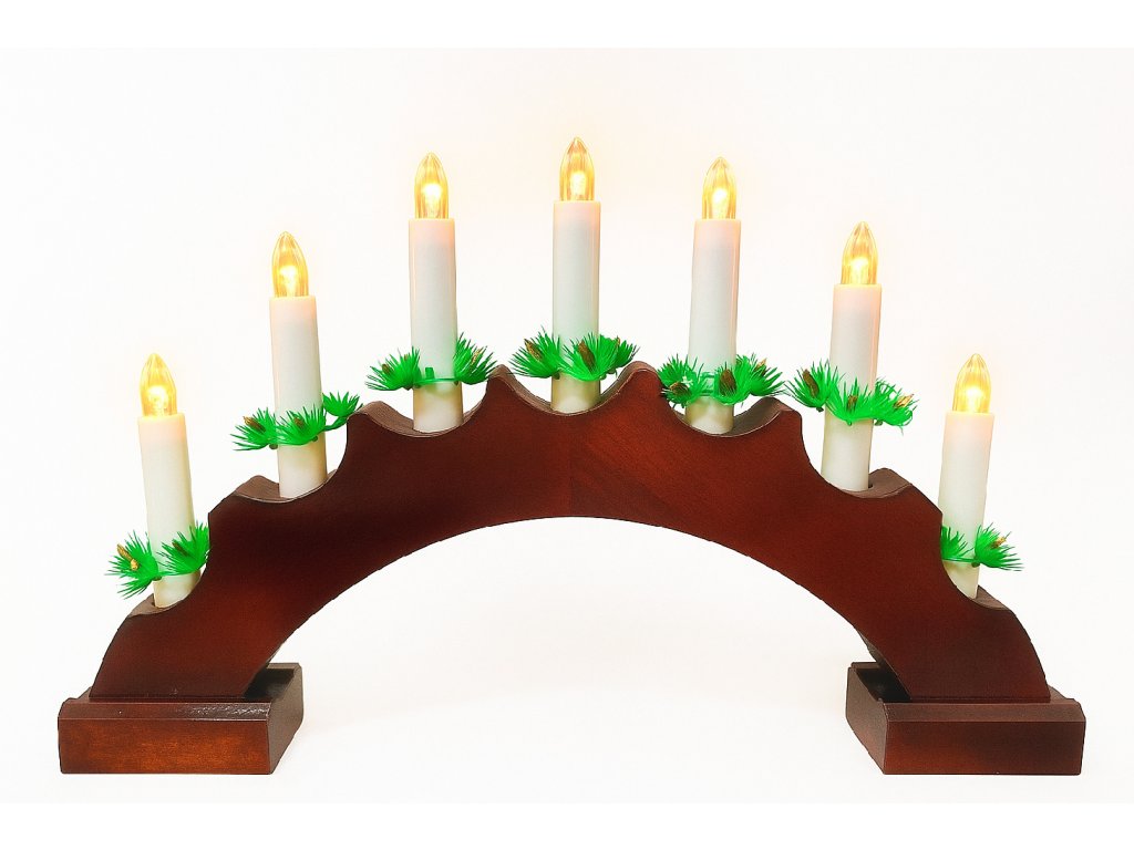 Tento elegantný vianočný drevený svietnik v tvare oblúka v krásnej vínovej farbe so 7 teplými bielymi sviečkami je štýlovou dekoráciou pre váš domov, ktorá nezávisí iba na vianočnom období. Svietnik vytvára útulné teplé svetlo, a na konci každej sviečky zdobí umelá ihličnatá ozdoba. Napája sa pomocou batérií, čo zjednodušuje jeho umiestnenie.