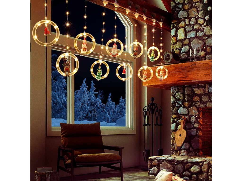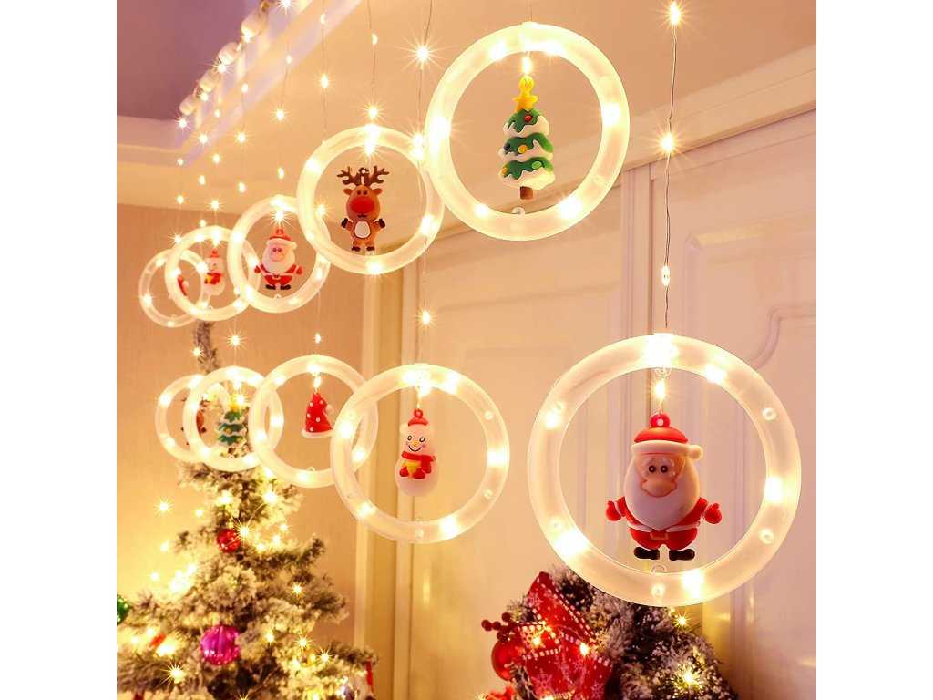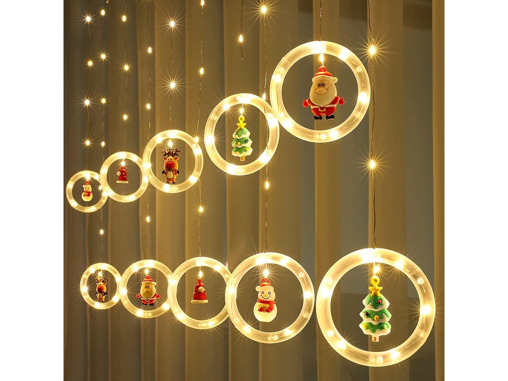 Vianočný LED svetelný záves s 10 krúžkami a postavičkami, 100 LED, 3m, rôzne farby na výber
