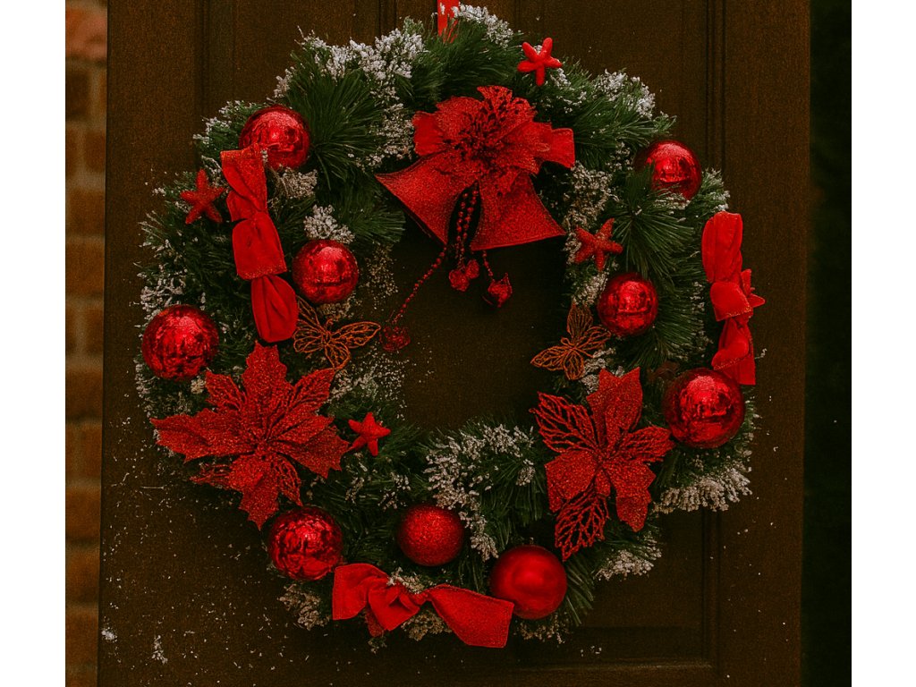 Tento veniec je ideálny pre milovníkov klasických Vianoc – vynikne samostatne, ale aj v kombinácii s ďalšími dekoráciami v červeno-zlatých odtieňoch.