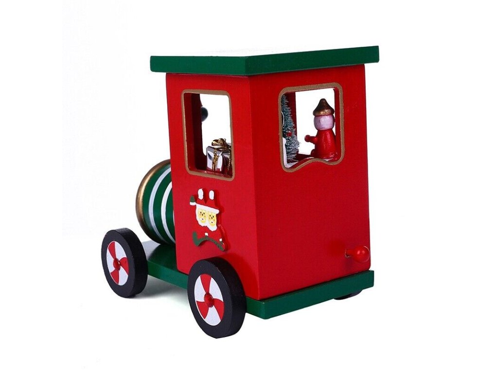 Vianočný vláčik s hudobným boxom je úžasný dekoratívny predmet, ktorý doplní vašu vianočnú výzdobu doma alebo v práci. Je to hracia skrinka, ktorá do vášho prostredia prináša kúzlo, rafinovanosť a eleganciu. Vyrobené z dreva, je odolné a plné jasných farieb, takže môžete šíriť vianočnú náladu a potešiť každého! Nevyužíva batériu, stačí otočíte kľúčik a hudba bude hrať!