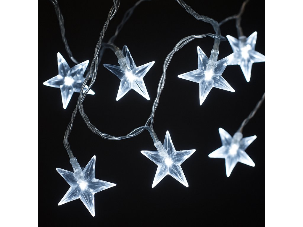 Vnútorná LED vianočná reťaz s hviezdičkami - 6m, 50 LED, studená biela, priehľadný kábel