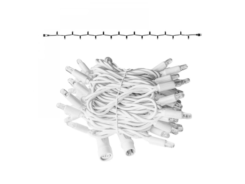 Vnútorná LED vianočná reťaz - studená biela, 10m, 100 LED, hrubý biely kábel