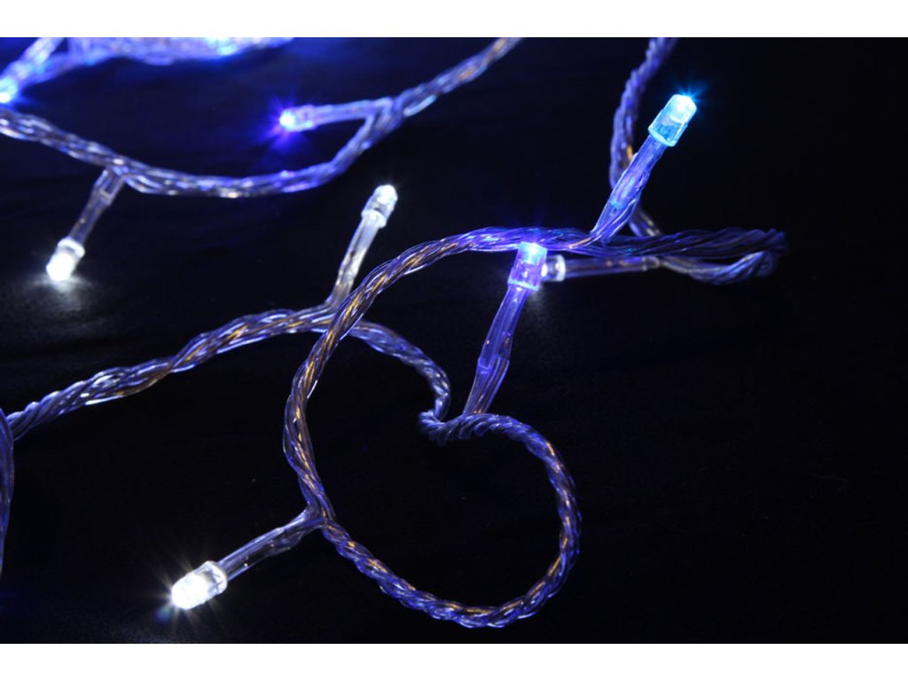 Vnútorný vianočný LED reťaz v modrej farbe s dĺžkou 2 metre a 20 LED diódami na priehľadnom kábli prináša mágiu Vianoc do vášho interiéru. Tento reťazec ponúka dve funkcie osvetlenia: stále svietenie a blikanie, čím umocňuje vianočnú atmosféru. Napájanie zabezpečujú 2xAA batérie (nie sú súčasťou balenia), čo zaručuje jednoduchú a bezdrôtovú inštaláciu.