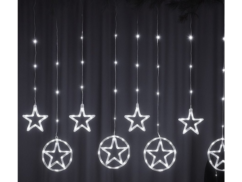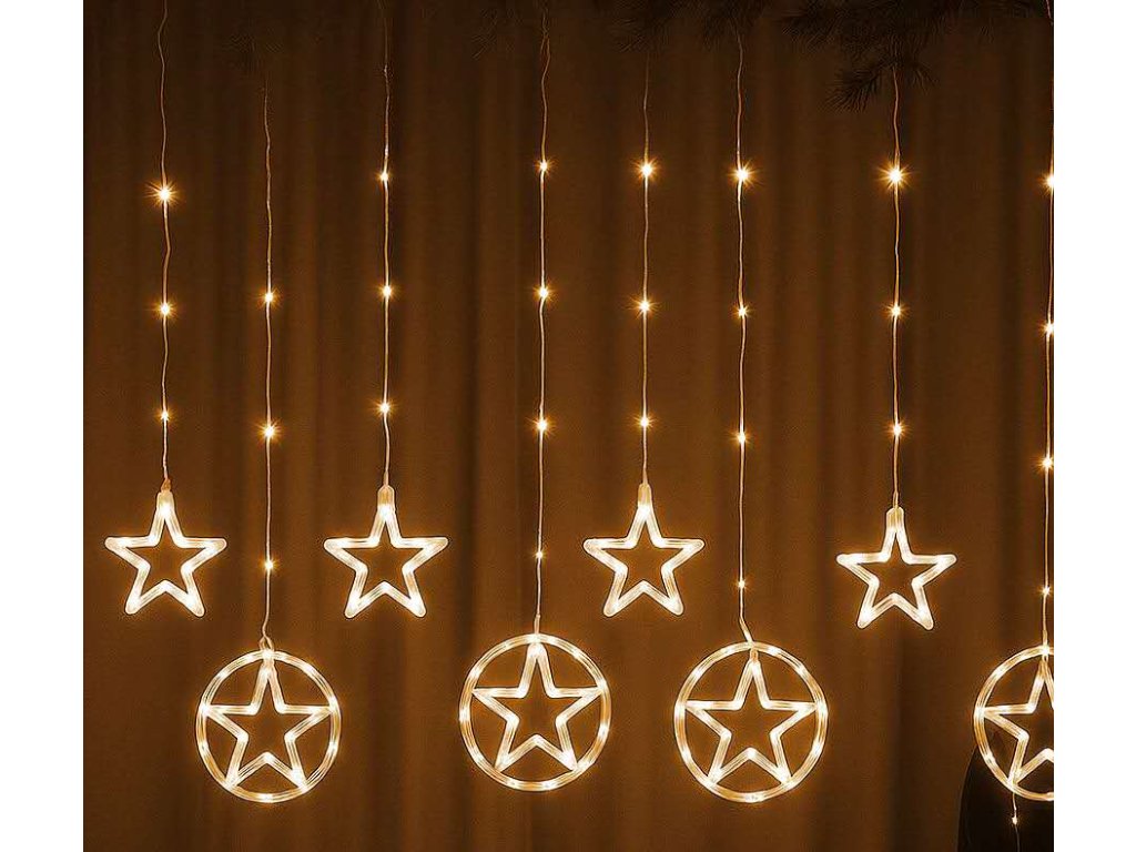 Vnútorný LED vianočný záves - hviezdy, 3m, 130 LED, rôzne farby na výber