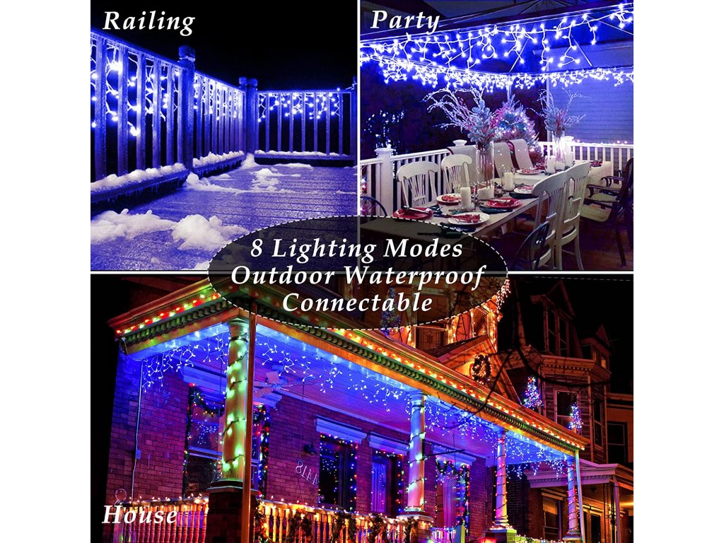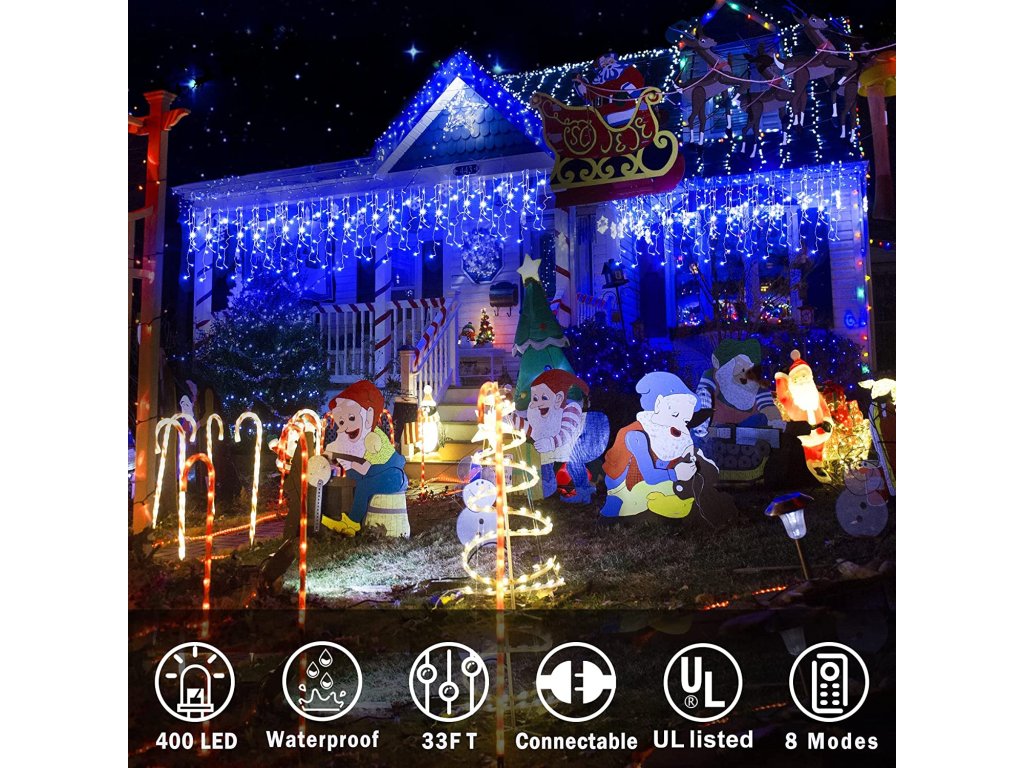 Tento dekoratívny vianočný záves je navrhnutý pre vonkajšie použitie a ponúka pôsobivú dĺžku 40 m s celkovým počtom 1 500 modrých LED diód. Priehľadný napájací kábel (5 m) je nenápadný a zabezpečuje hladký vstup do priestoru. Samotné pramene svetiel sú v troch dĺžkach — 70 cm, 50 cm a 30 cm — ktoré sa potom opakujú, čo vytvára zaujímavý a rytmický efekt svetla. Napájanie má nízku spotrebu (9 W), takže je energeticky efektívne. Záves je prepojiteľný, čo umožňuje jednoduché rozšírenie dekorácie na väčšie plochy. Vďaka 8 rôznym programom je možné meniť štýl svietenia – od pokojného svetelného závoja po pulzujúce blikanie.