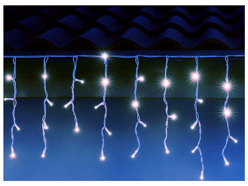 Vonkajší LED vianočný záves PROFI – 10 m, 312 LED, studená biela, stále svietenie, silný biely kábel