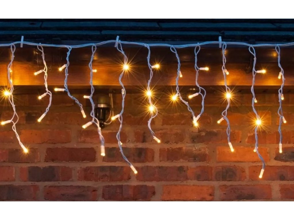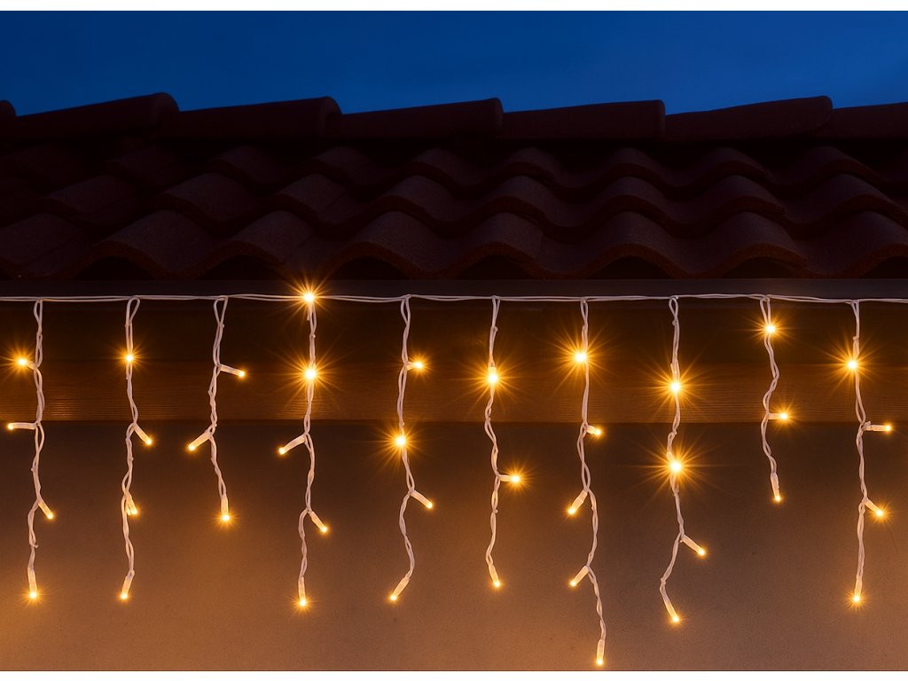 Vonkajší LED vianočný záves PROFI – 10 m, 312 LED, teplá biela, stále svietenie, silný biely kábel