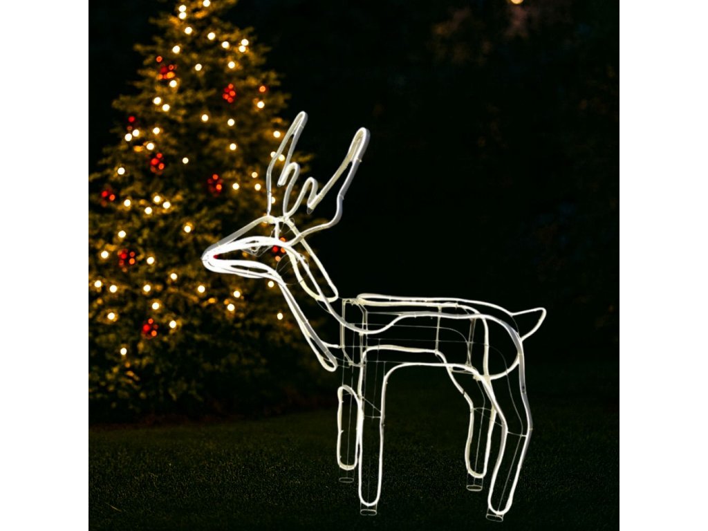 Vonkajší vianočný LED svietiaci sob prináša do vášho vonkajšieho priestoru rozprávkovú atmosféru. S dĺžkou 93 cm, výškou 102 cm a šírkou tela 19 cm je elegantným prvkom vianočnej výzdoby. Parohy so šírkou 56 cm dodávajú sobovi výrazný vzhľad. Kovová konštrukcia a tenký LED pás (šírka 1 cm) vytvárajú nádherné svetelné efekty. Sob má skladací dizajn, čo zjednodušuje montáž, a je ideálnym doplnkom pre vonkajšie prostredie.