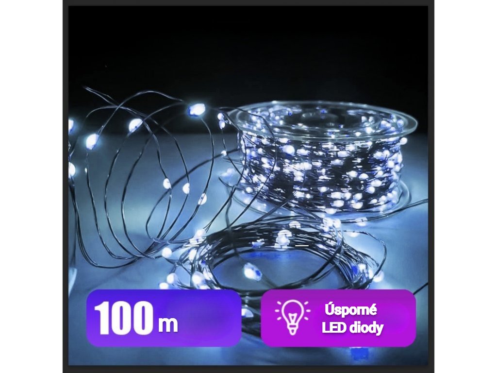 Vonkajšia vianočná mikro reťaz, studená biela, 200m, 2000 LED, 8 programov