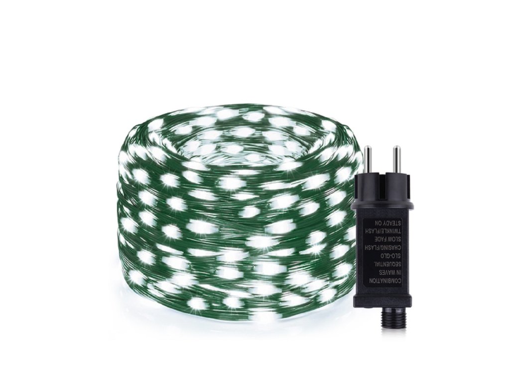 Vonkajší vianočný mikro reťaz so studeným bielym svetlom prináša vianočnú mágiu. S dĺžkou 200 metrov a 5metrovým zeleným káblom, obsahuje 2000 LED diód. Ponúka 8 programov osvetlenia, vrátane časovača so 6h zapnutím a 18h vypnutím. Funkcia pamäte udržuje vaše preferované nastavenie. Ideálne pre vytvorenie krásnej vianočnej atmosféry vo vašej záhrade.